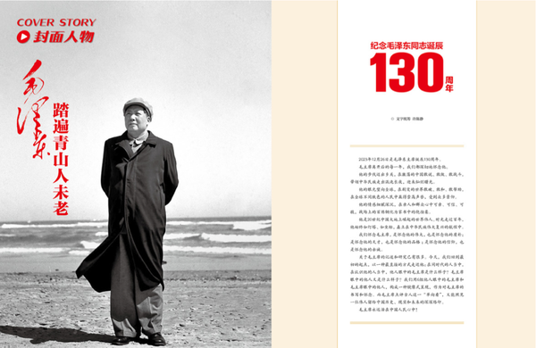 2023年12月1日,為紀(jì)念毛澤東同志誕辰130周年,人民日?qǐng)?bào)社《環(huán)球人物》雜志以《毛澤東,踏遍青山人未老》為封面標(biāo)題,推出長達(dá)60頁、共計(jì)6萬余字的封面報(bào)道。這是主流刊物中內(nèi)容最豐富、最早上市的紀(jì)念毛澤東同志誕辰130周年的專題報(bào)道,立即引發(fā)熱烈反響。