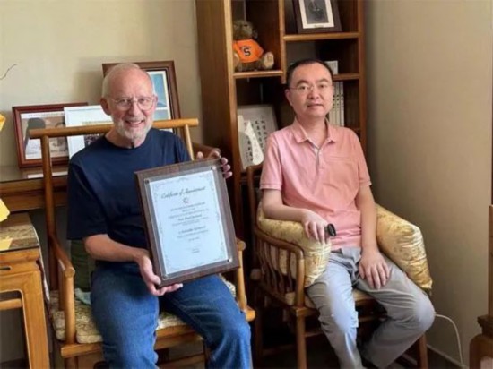 8月1日,蔡磊團隊與美國國家科學院院士唐·克利夫蘭討論攻克漸凍癥的科研進展,并聘請其擔任團隊科研顧問。受訪者供圖