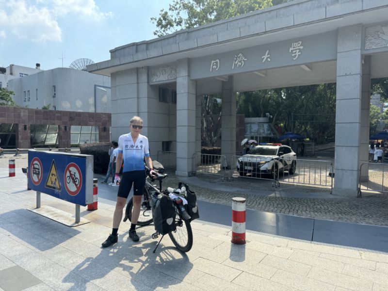 Weighing 18 kilograms, his bicycle loaded with 45 kilograms of luggage, Ole Bouman set off on his journey on February 1, 2024, from Amsterdam, embarking on a 10756-kilometer route through 18 countries and one war zone, visiting 500 historical sites along the way. At over sixty years old, Bouman, a professor at Tongji University’s College of Architecture and Urban Planning, began his "Journey to the East," a ride lasting 156 days, before reaching Shanghai and Tongji University.