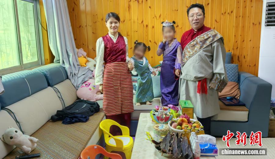 黃小芳一家人共同慶祝藏族傳統節日。 受訪者供圖