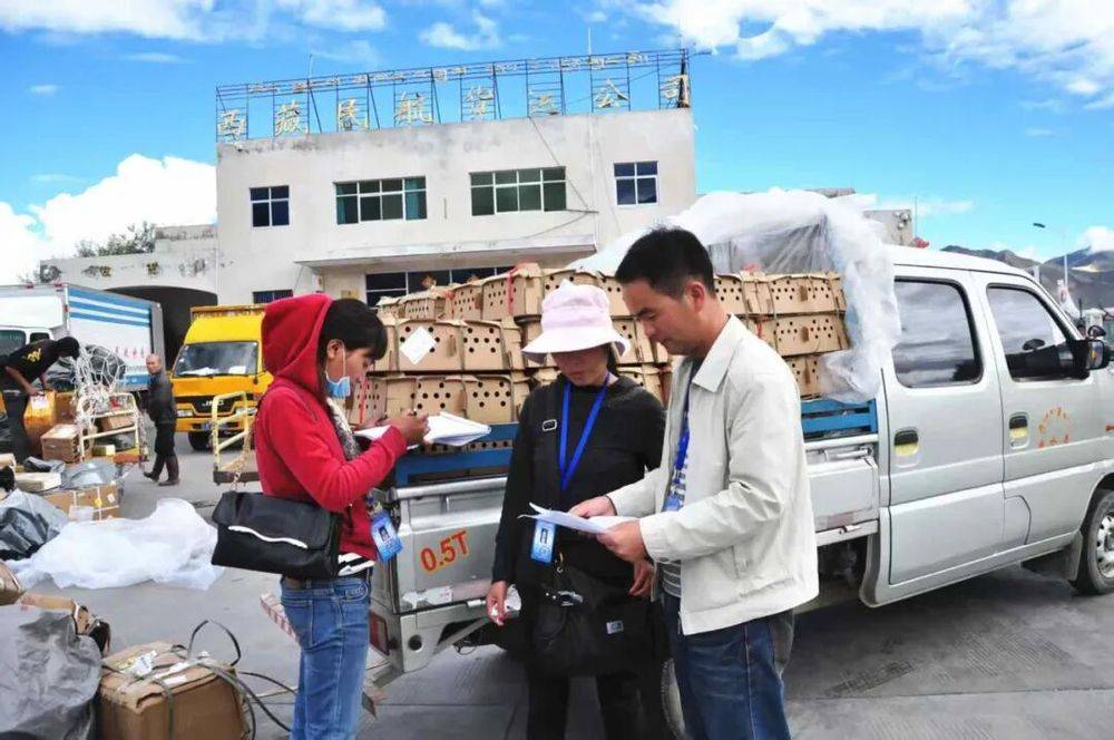 伍國強(右)在西藏進行檢疫檢驗抽查