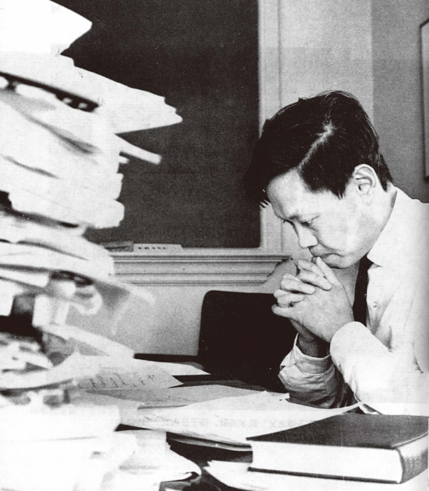 世紀之交,我在英國劍橋大學卡文迪許實驗室以及應用數(shù)學與理論物理系工作。我在辦公桌上方貼了一張楊先生1963年在普林斯頓高等研究院辦公室的照片。照片中,他坐在堆得高高的文獻旁沉思。當時,我的一項研究與楊先生的一篇論文密切相關,我就通過電子郵件向他請教。他不僅回了信,還把他簽名的中文文集和英文論文集送給了我。