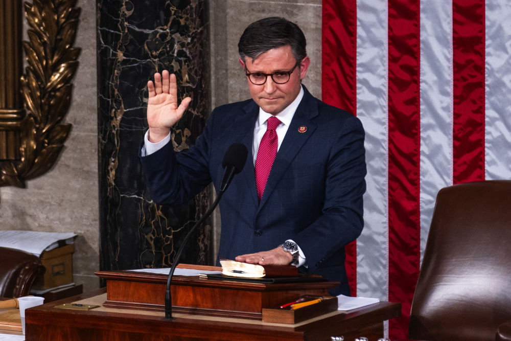 2023年10月25日,在美國華盛頓國會,新當選的眾議院議長邁克·約翰遜宣誓就職。新華社發(亞倫攝)