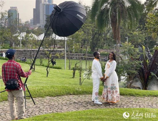 告別咖啡店,繼續(xù)行走在友誼廣場,一張張笑臉、一聲聲“你好”,讓記者和同事流連忘返。幾對新人在廣場上拍婚紗照,我們送上美好祝福,熱情開朗的埃塞人還邀請記者一起合影,鏡頭記錄下兩國人民友好的瞬間。